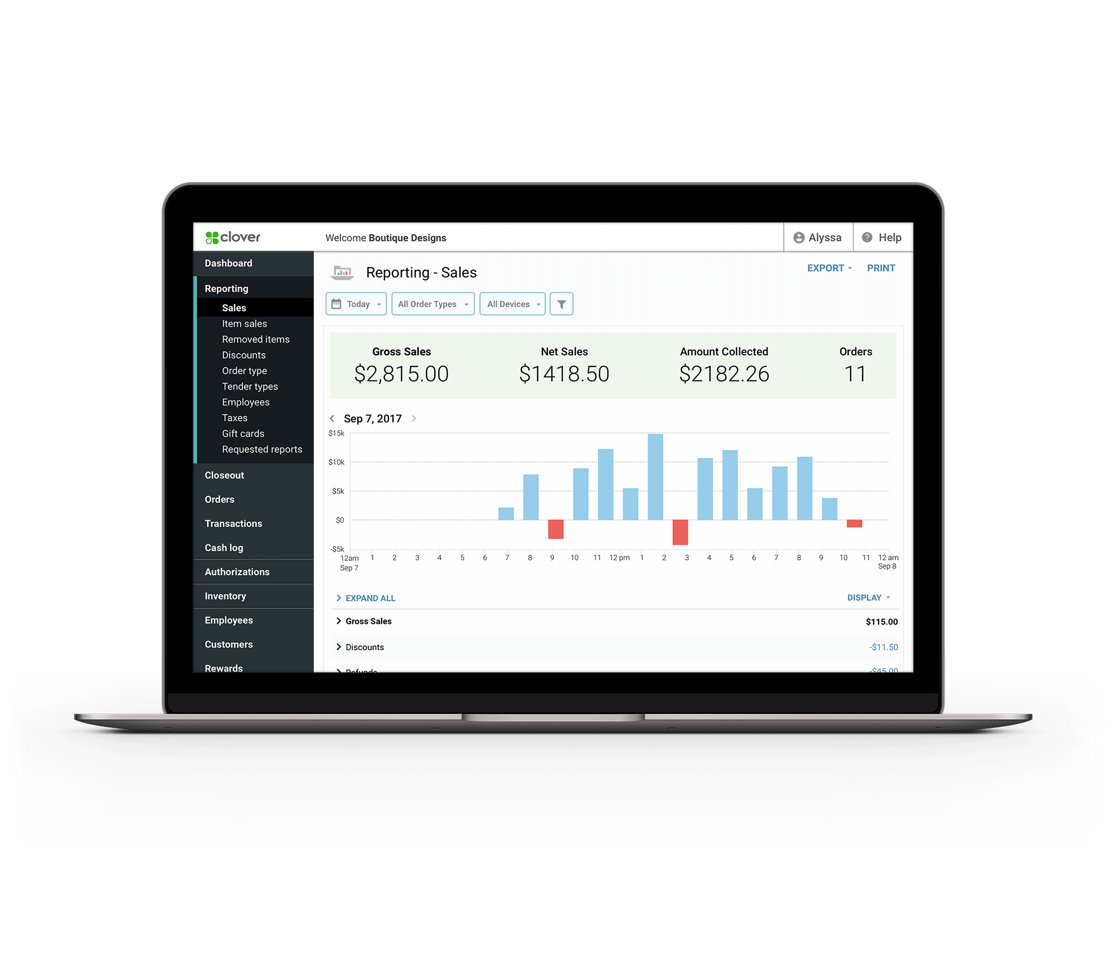 Supports Apple Pay, Google Pay, and physical cards like contactless, EMV Quick Chip, and magnetic stripe. Print receipts with the built-in printer, or send digital receipts by email and text message. Get cloud-based inventory, item tracking, and real-time transaction history right at your fingertips.